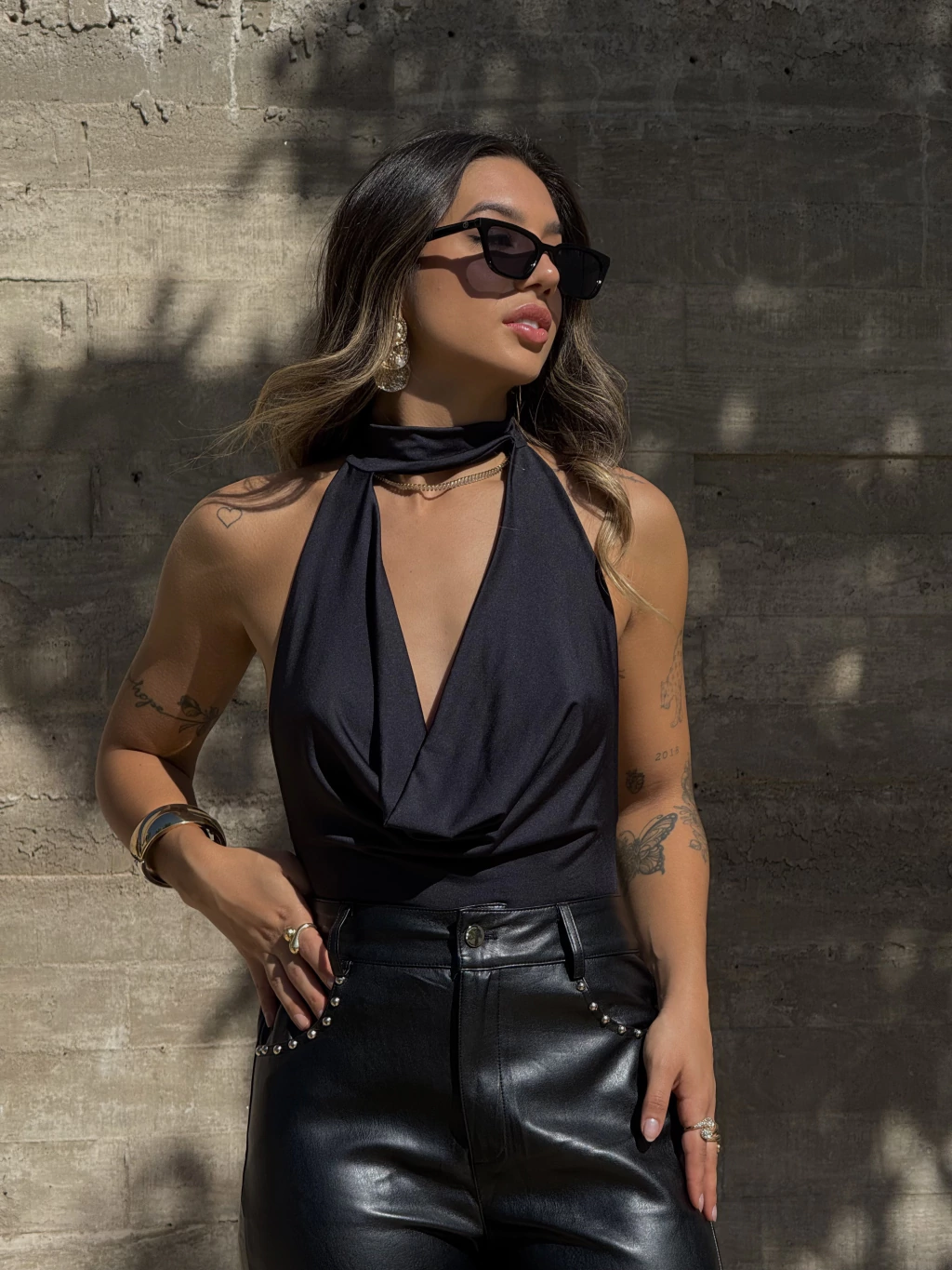 A Calça de Couro Fake modelo skinny da linha Emily é a escolha ideal para quem deseja um visual moderno e elegante. Com cintura alta e passantes, esta calça valoriza a silhueta feminina, perfeita para diversas ocasiões.